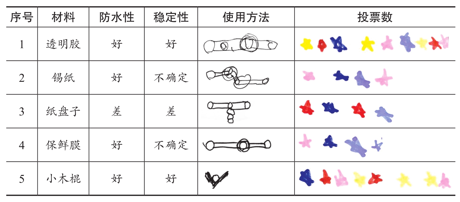 幼儿对加固材料进行了投票,具体如表6-1所示。