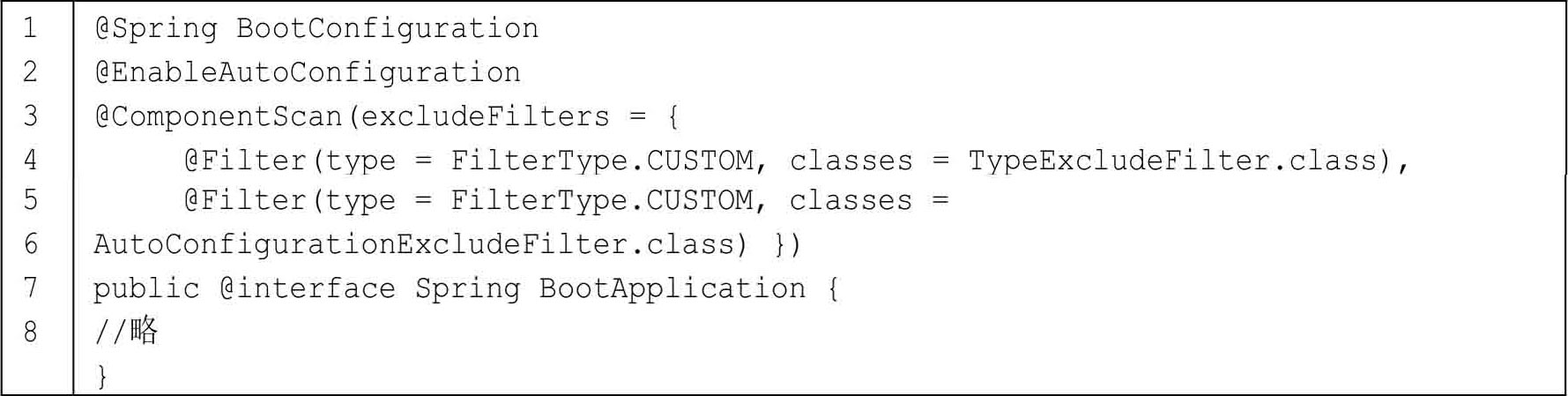 在前文的介绍中,读者已经了解到@Spring BootApplication注解是加在项目的启动类上的。@Spring BootApplication实际上是一个组合注解,定义如下: