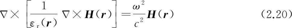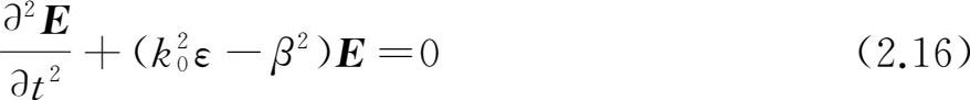 对于介电函数 ε=ε ( r )来说,其在一个光学波长量级距离内的变化是可以忽略的,此时式(2.13)可以简化为电磁波理论的中心方程: