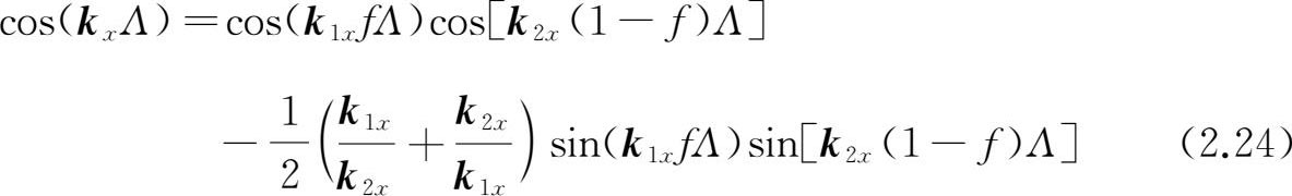 分别为两种填充介质的折射率。由于介层光栅层的折射率在一维