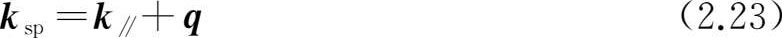 图2.4(b)显示了在不考虑Drude模型中金属碰撞频率的情况下式(2.21)所描述的色散关系。当电磁波频率接近表面等离子频率(