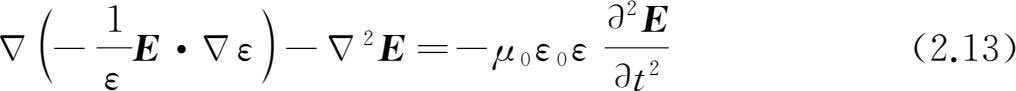实际上,这个方程需要在 ε 为常数的区域内单独计算,而且得到的解必须和适当的边界条件相匹配。为了使式(2.14)更直接地描述受限传播波束,可以执行以下两个步骤。
