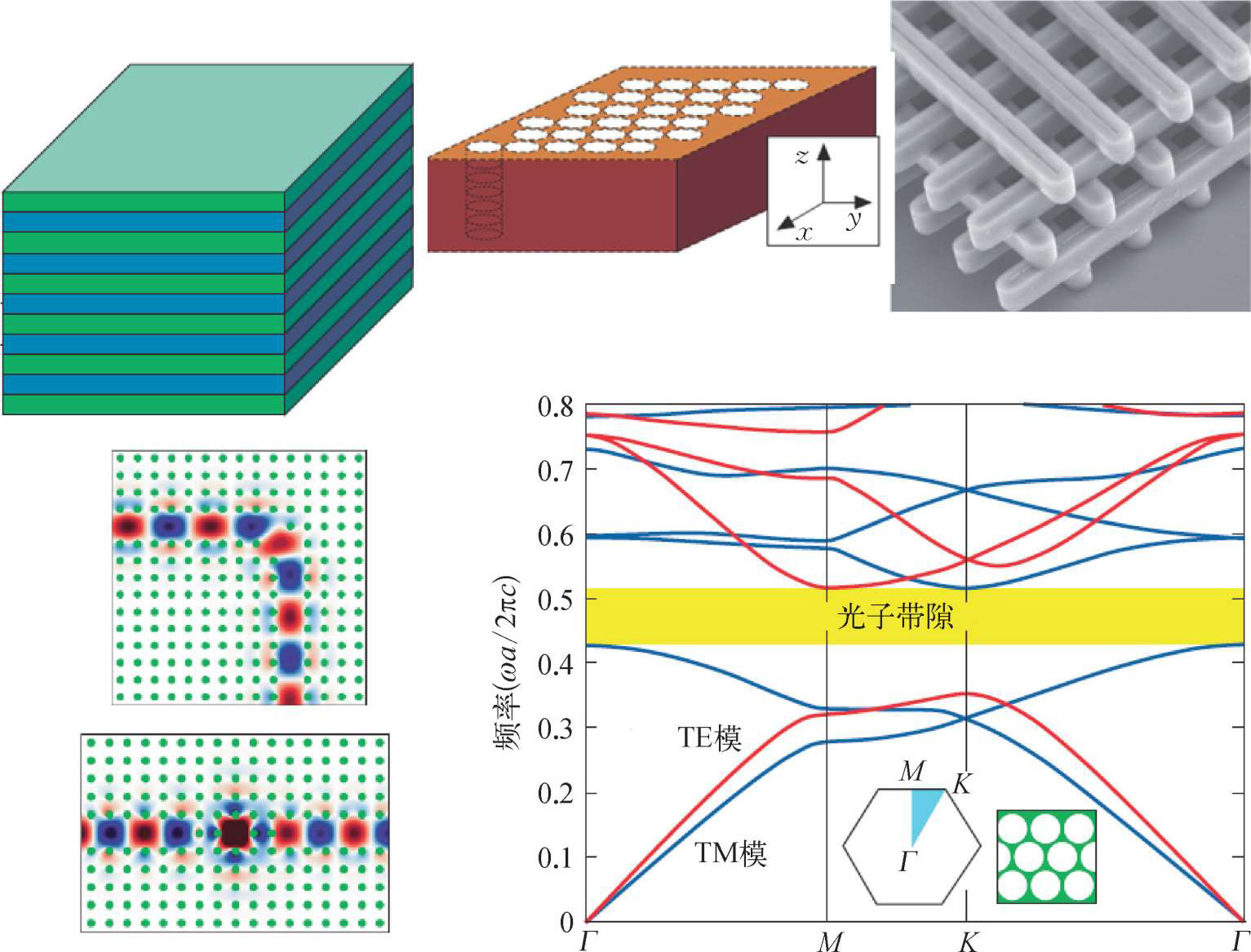 光子晶体是波长量级的介质或金属材料在空间周期性排布形成的人工微结构,这使得此波长附近的电磁波在光子晶体中的波传播行为类似于固体物理中电子在晶体中的行为,并具有一系列相似的物理概念。光子晶体可由布洛赫(Bloch)函数 H k ( r )描述: