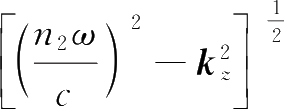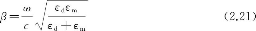 因此,式(2.21)就是无限宽金属-介质上SP波的色散关系,而对TE波不存在物理上有意义的解,TE波不能激发SP波,SP波均为TM偏振波。