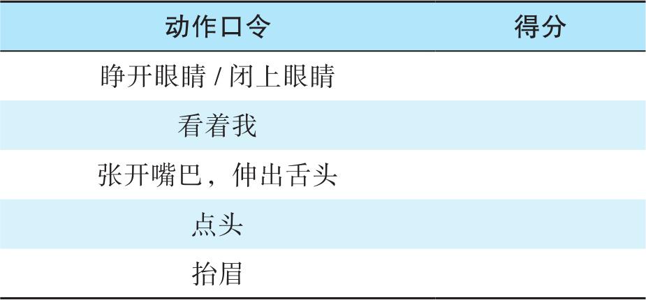 一般用5个标准化问题(standardized 5 questions,S5Q)评估重症患者的觉醒合作水平(表5-2)。包含5个问题,每项1分,能够配合执行相应的口令任务记1分,不能完成记0分。总分为5分,得分≥3分表示患者清醒,能够主动配合评估和治疗。