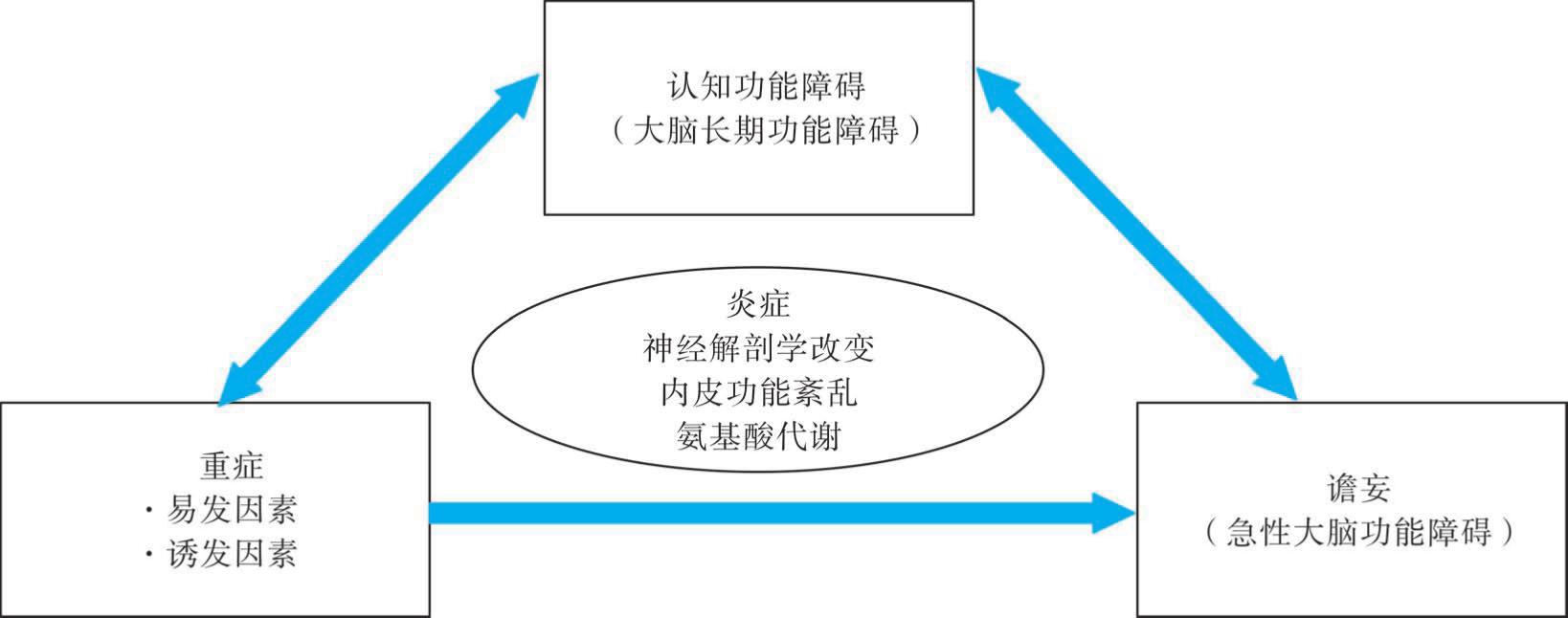 图5-5 谵妄与重症后长期认知功能障碍之间的复杂关系