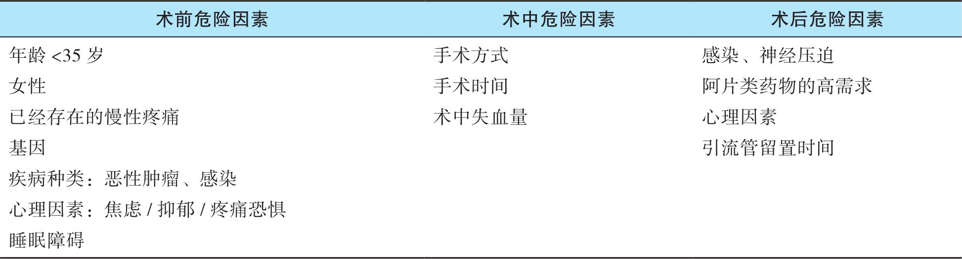 在所有的危险因素中,有不可改变的因素,也有可控因素。可在术前进行可控因素的评估与干预来降低疼痛发生的概率。