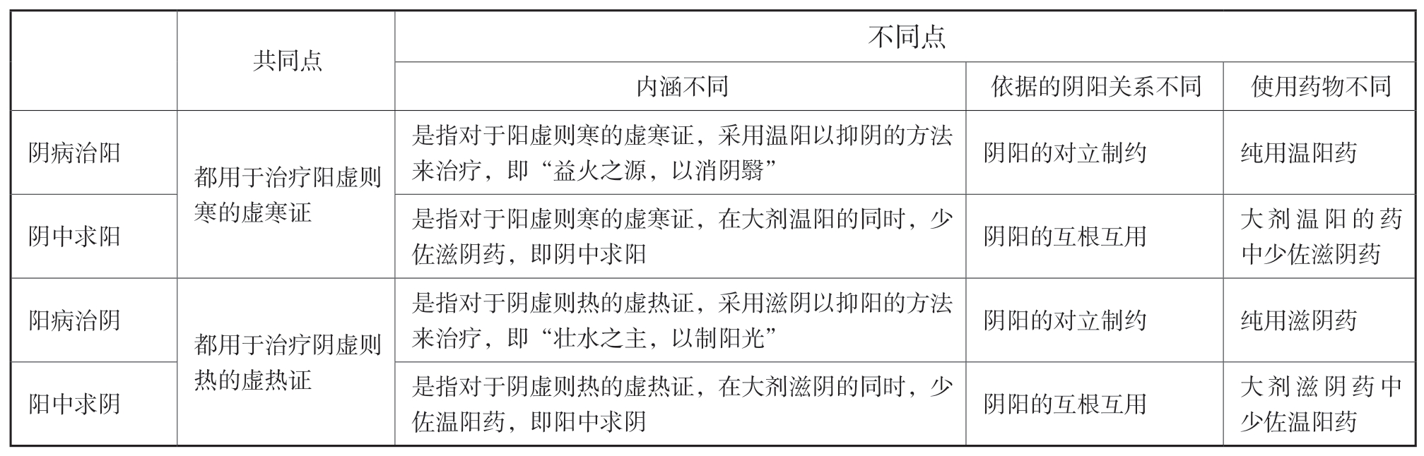 阴病治阳与阴中求阳及阳病治阴与阳中求阴的鉴别