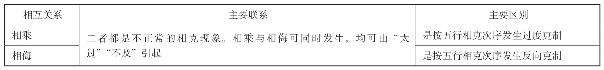 五行相乘与相侮的关系对比