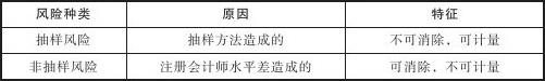 (1)抽样风险的形成原因及解决方法,抽样风险是由审计抽样方法决定的,只要使用了审计抽样,抽样风险总会存在。抽样风险与样本规模成反比,注册会计师可以通过扩大样本规模降低抽样风险。极端方式是对总体中所有项目都实施了检查时抽样风险等于零,但这就不是审计抽样了。