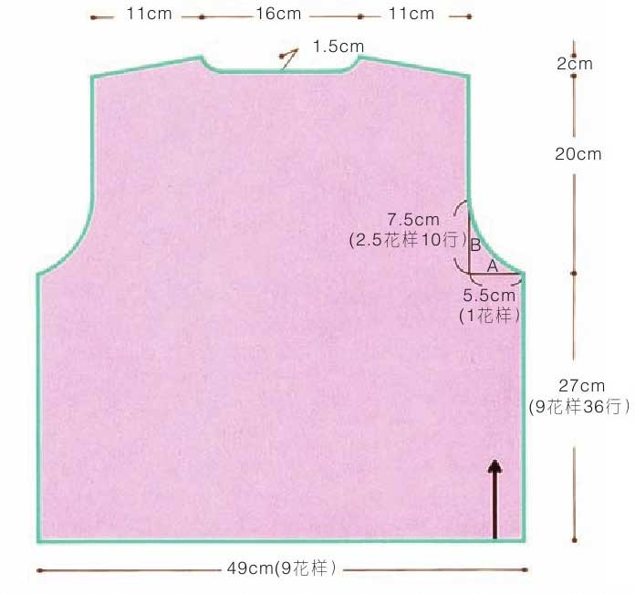 袖窿弧线横向宽度A为5.5cm÷5.5cm=1花样
