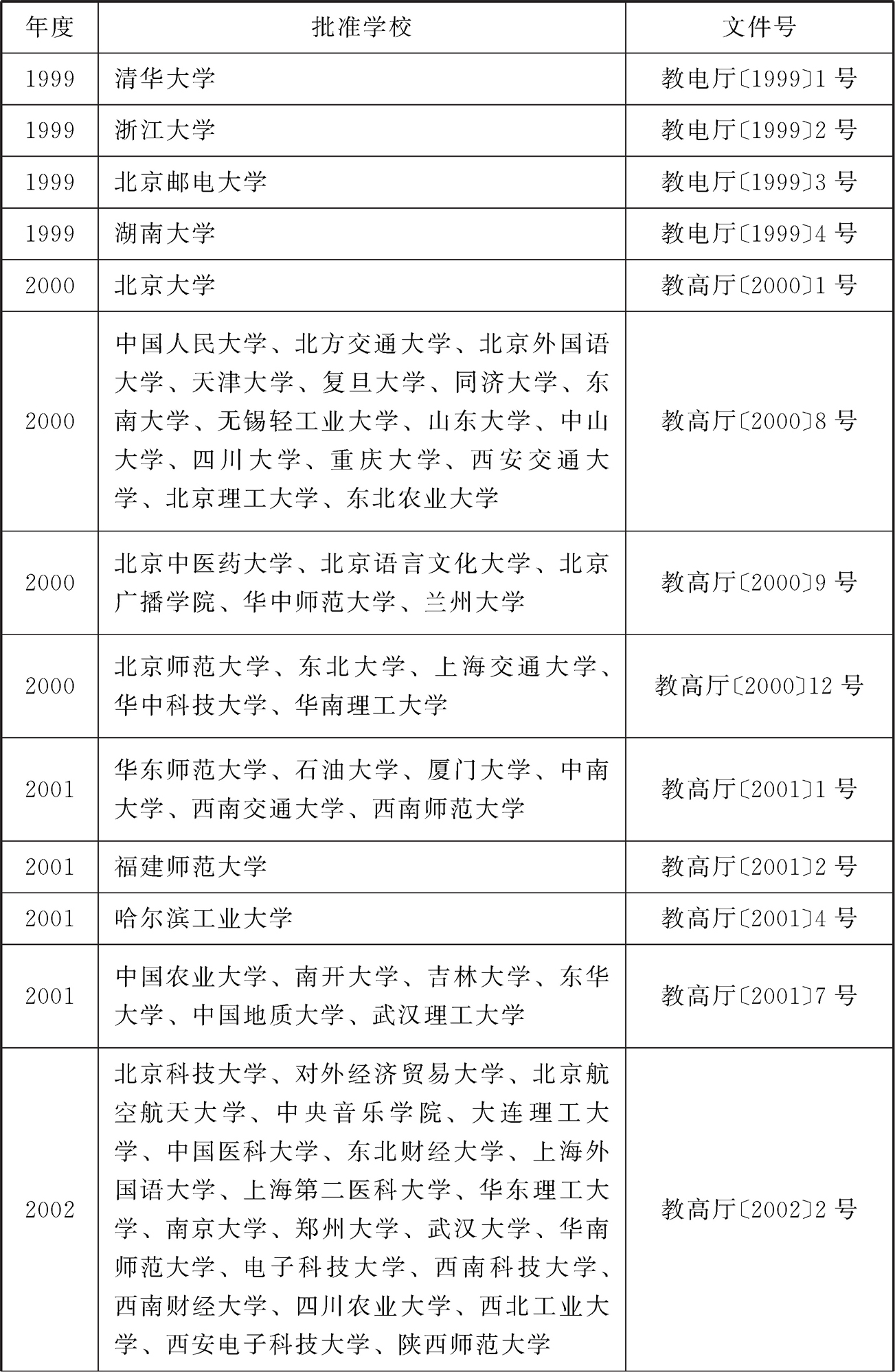 表2-1 教育部批准开展现代远程教育试点的普通高校