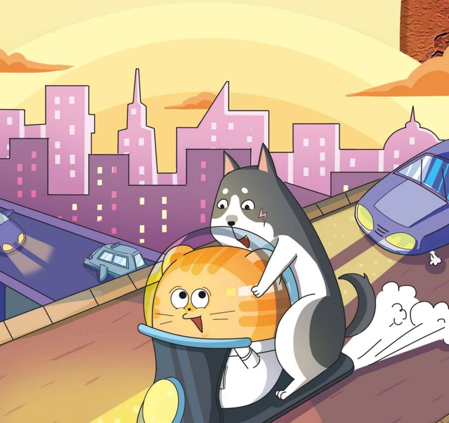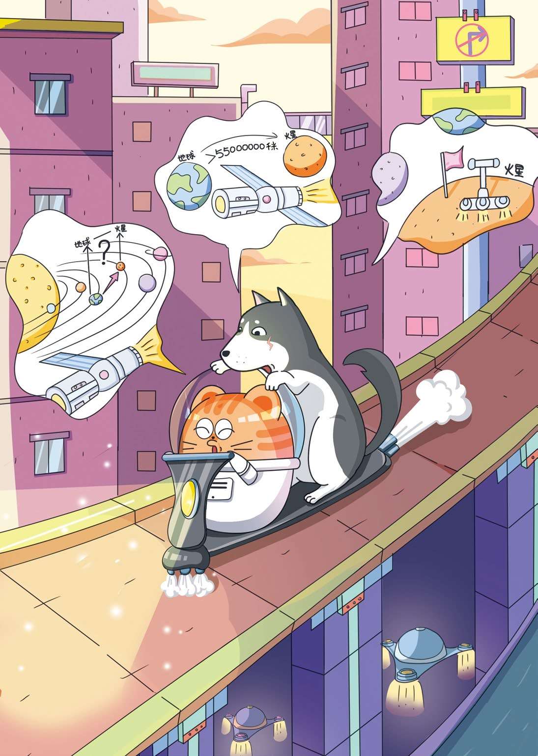 “好,现在的任务是赶紧送本喵回火星。”火星喵说。它在流浪狗的带领下风驰电掣般地冲向航天基地。