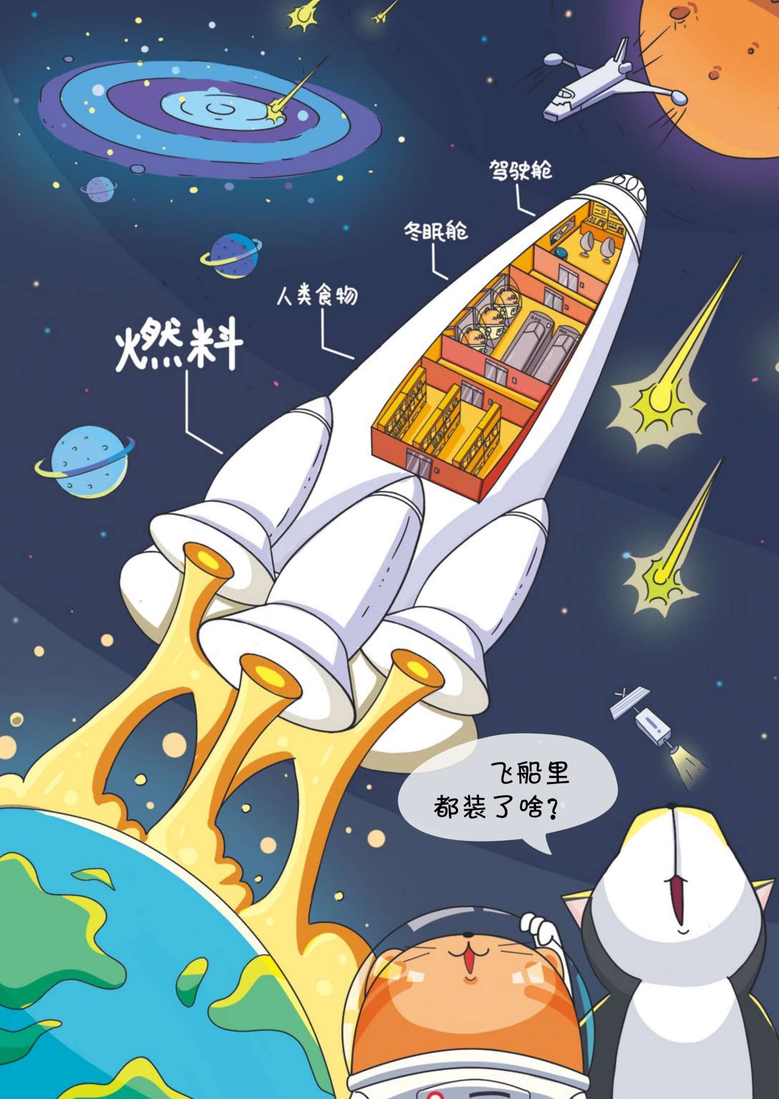“哦,太好了。”火星喵问道,“那现在的宇宙飞船是什么样子的啊?去火星要用多少时间?”