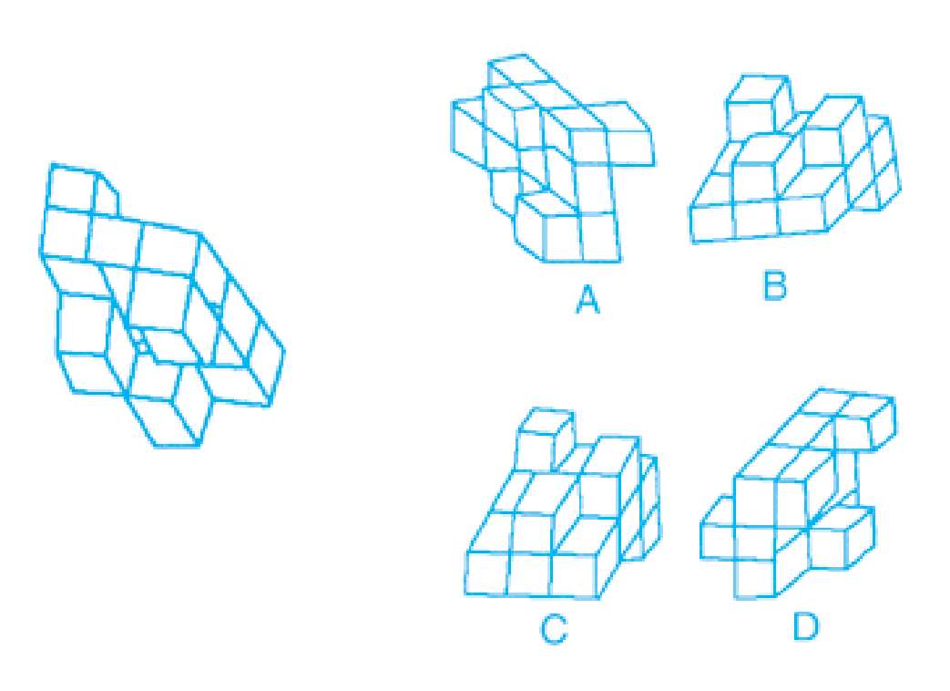 请在右侧 4 个图形中找出一个与左图相符(旋转一定角度或方向)的图形。