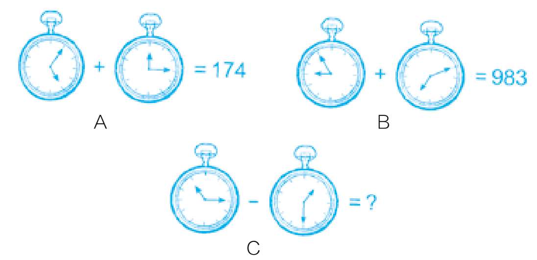 你想知道如何破译密码吗?来做一道题,看看你的破译能力。先看一看两个时钟所组成的A和B算式,然后破译出C算式的结果是多少?考验你的时候到了! t/VPT3roZkxuXZaFFwOCD+zLV5ytQb+7hPsr3597uJk2nK9MOWPbkwhrL03WJ9j/