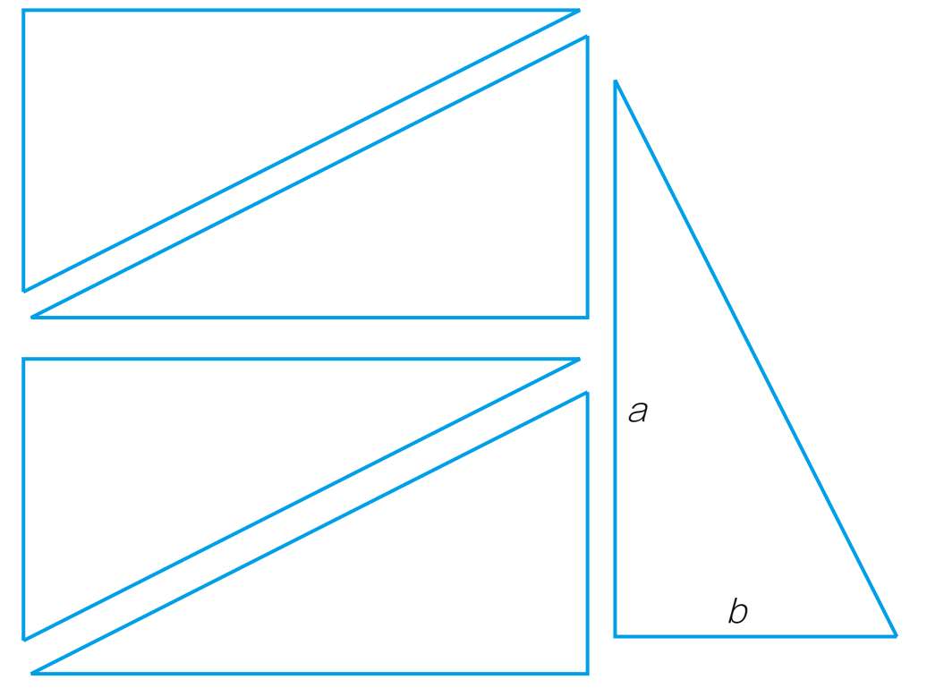如图,有 5 个全等的三角形, a 边是 b 边的 2 倍长。要求你在其中的一个三角形上剪一刀,然后把这 5 个三角形拼成一个正方形。 f1UP0NOnnsYeag4ANPc7CwgOuTGPsUH2LeUSJ2FzF+loaTx4vbvMUrd60hpTcp1W
