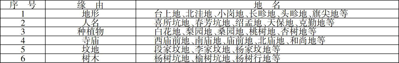 河北铺村的土地都有名字,其名字有的按地形取,有的按人名取,有的按种植物取,具体如表2-3所示。