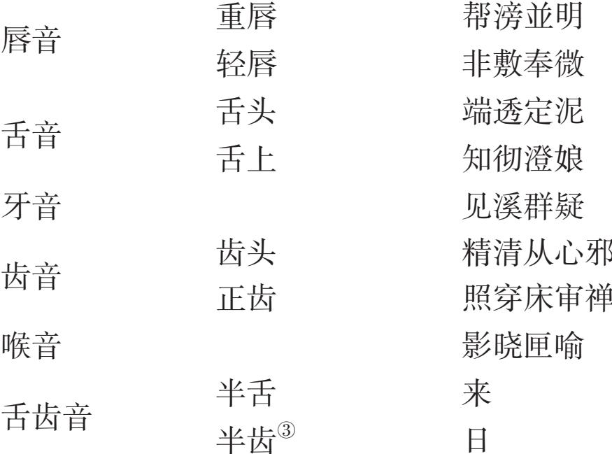 ③ 郑樵所谓“七音”,指唇、舌、牙、齿、喉、半舌、半齿。