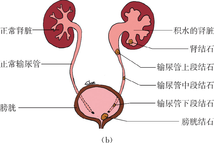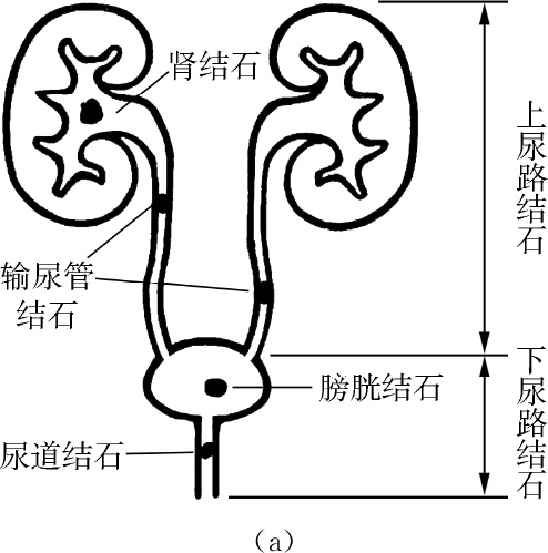 一般来说,尿路包括肾脏、输尿管、膀胱和尿道。因此,尿路结石就是指在泌尿系统腔道内形成的结石,通常是指肾结石、输尿管结石、膀胱结石以及尿道结石(见图1-1)。
