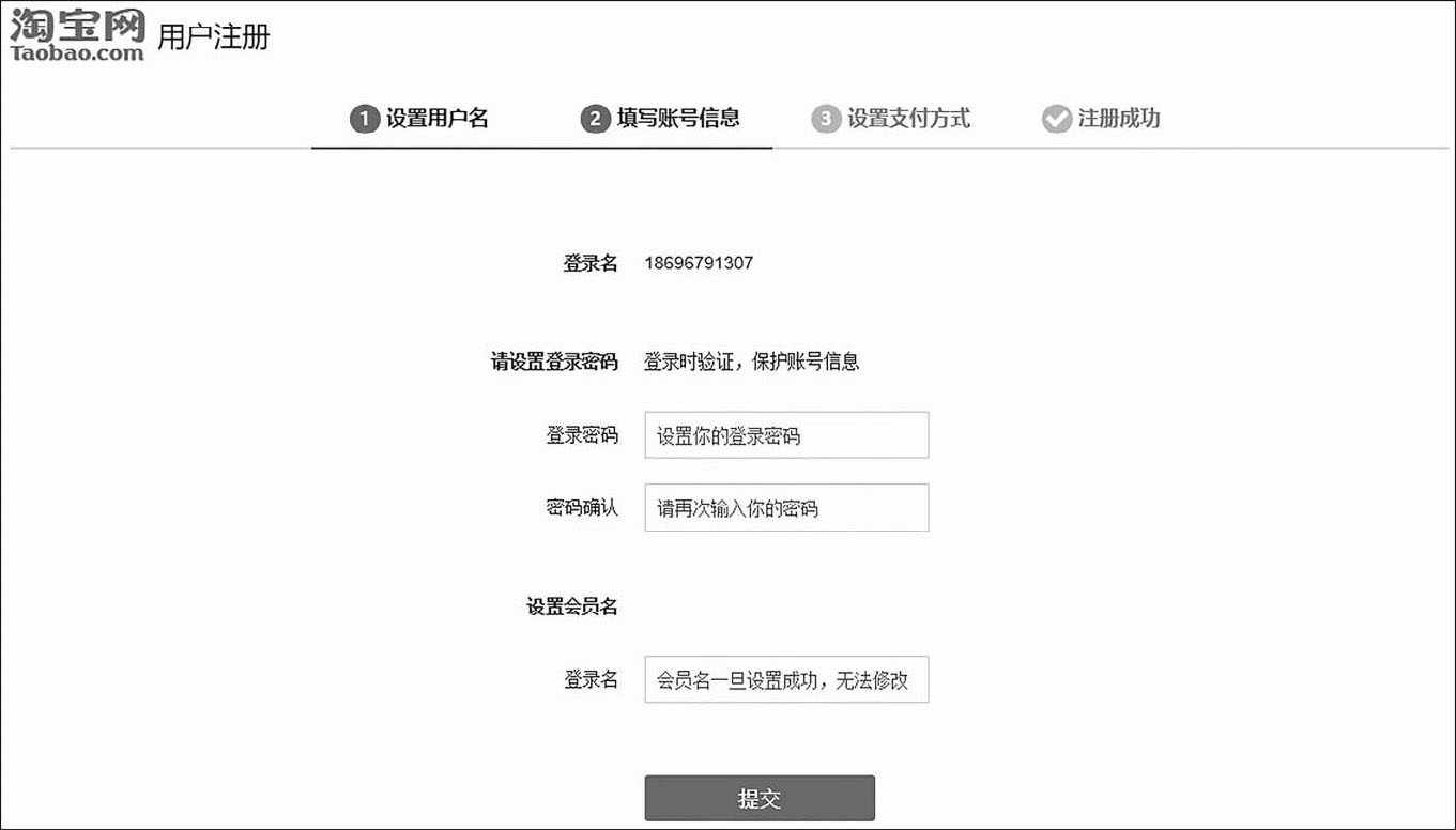 在成功注册淘宝账户后,系统会同时生成一个对应的支付宝账户,无须独立注册支付宝账户。如有其他情况需要单独注册支付宝账户,请参考“活动2 注册支付宝账户”。