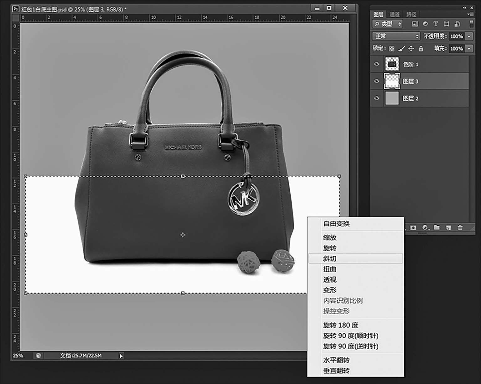 (3)按“Ctrl+T”快捷键,进行自由变换,利用斜切和缩放进行调整,效果如图2.2.18所示。