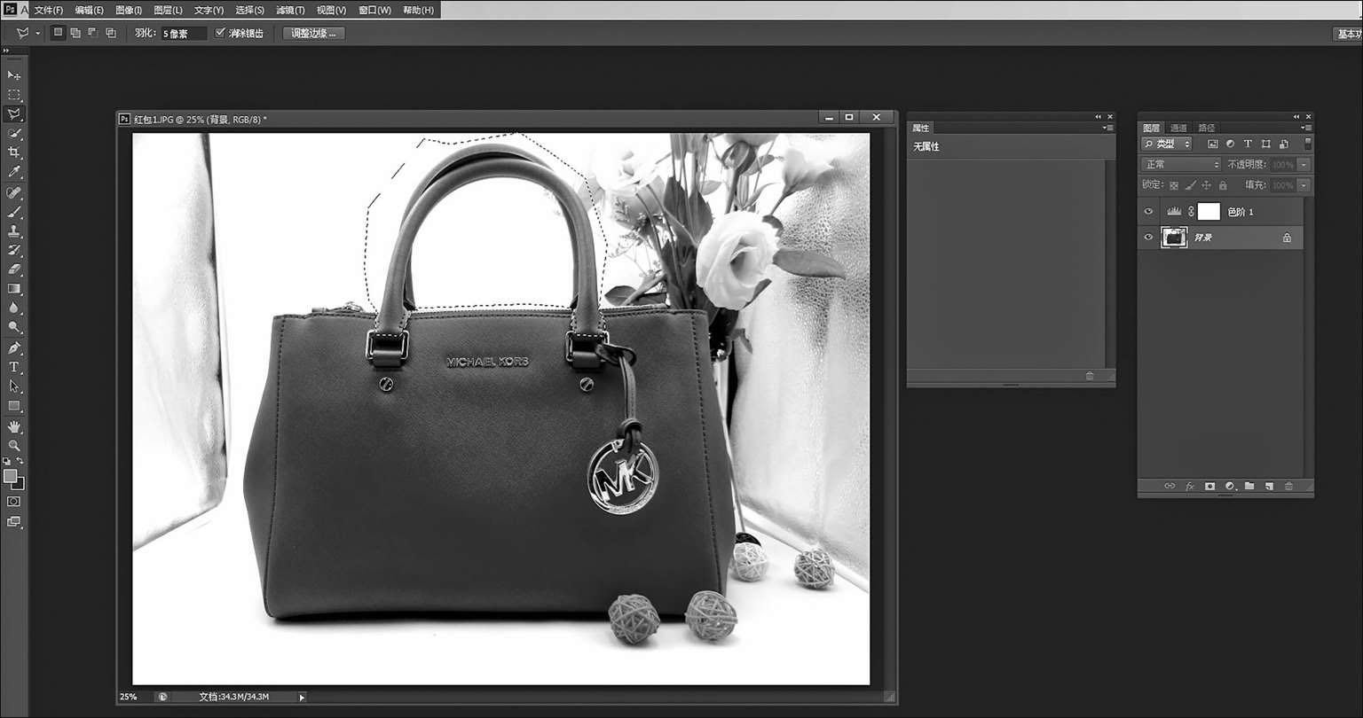 (1)背景较简单,与商品图的色差大,可使用魔棒快速选择工具。