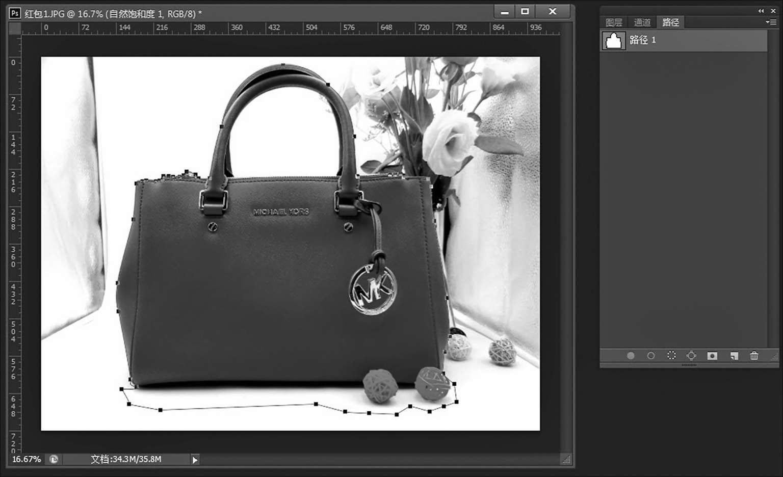 ,沿着商品边缘描出红包的闭合路径,如图2.2.10所示。
