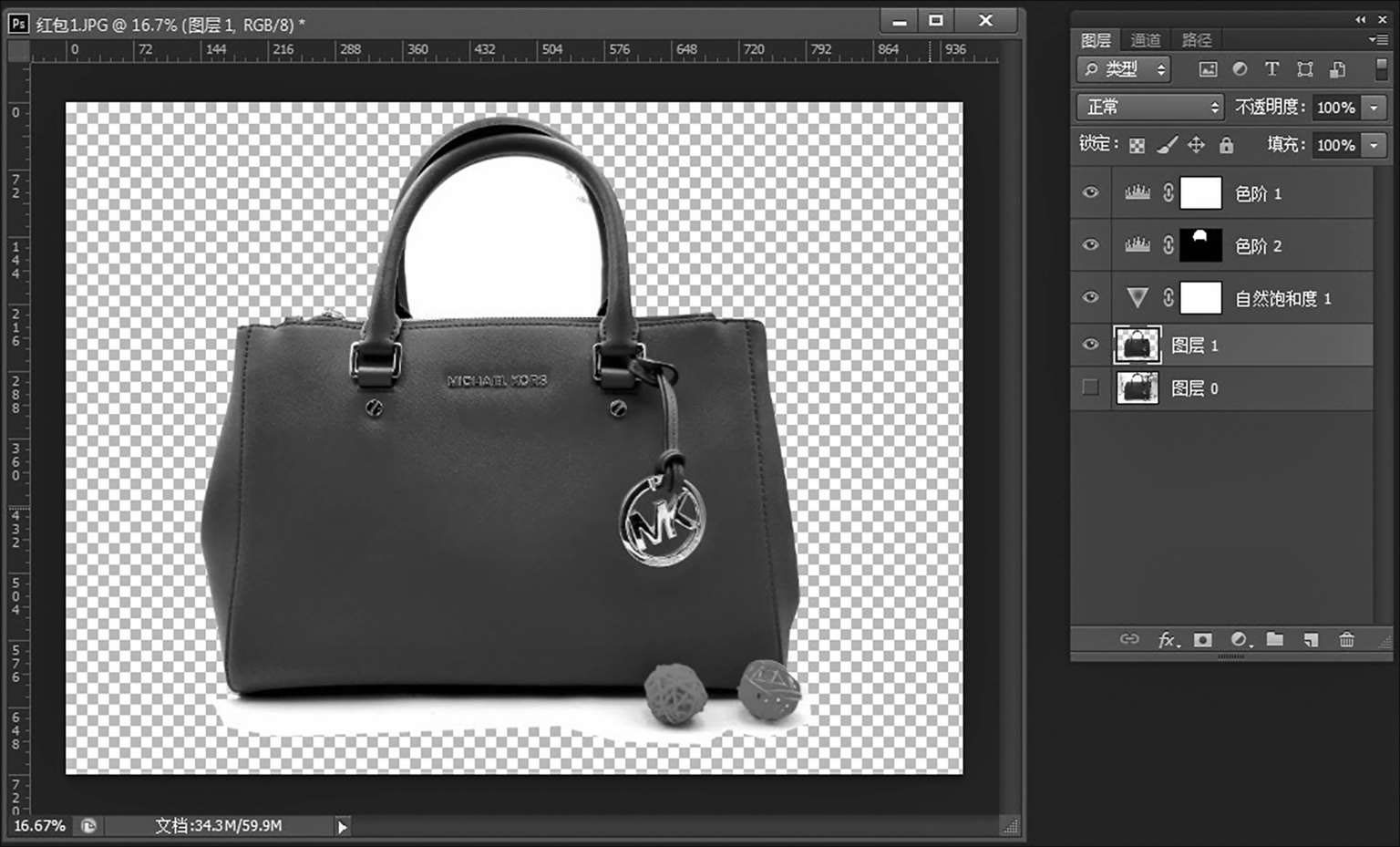 (3)背景复杂,商品图有毛发或绒毛,使用通道+色阶。