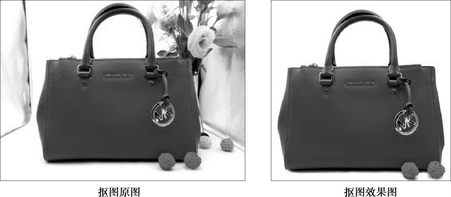 把拍摄原图对照商品实物进行了色差调整后,需要把商品抠选出来,搭配白底。抠图前的原图与抠图后的效果图如图2.2.9所示。