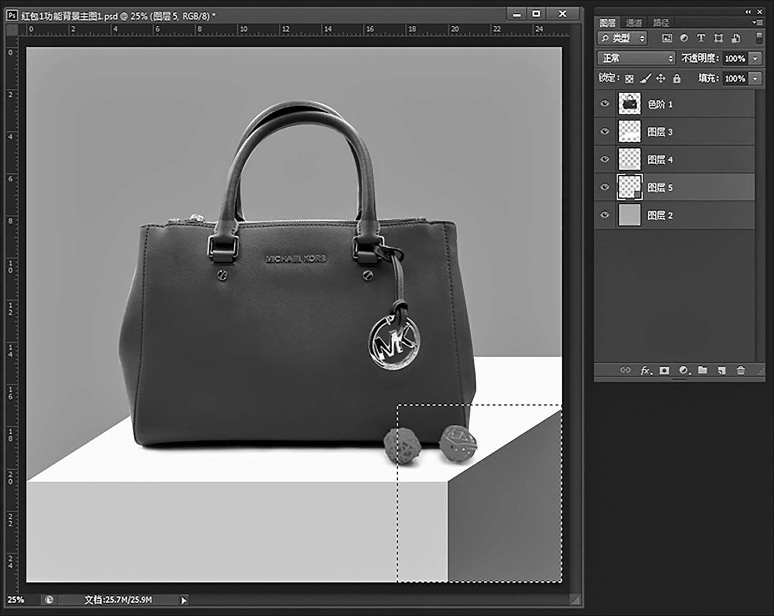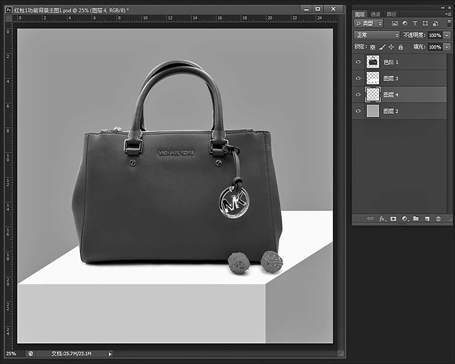 晓玲和她的团队合力设计并制作了一套商品的主图。请根据晓玲和她的团队制作商品主图的技巧,对女包图片进行抠图美化和主图制作,要求如下: