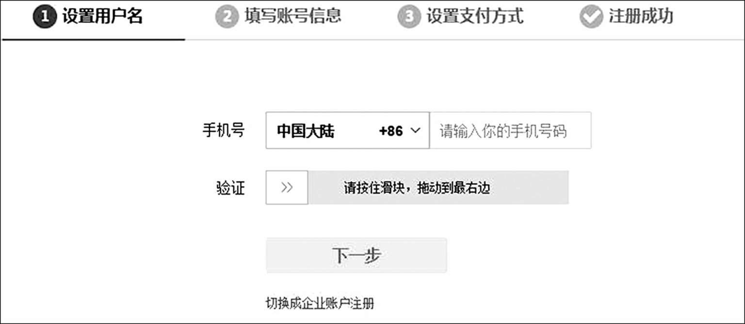 在成功注册淘宝账户后,系统会同时生成一个对应的支付宝账户,无须独立注册支付宝账户。如有其他情况需要单独注册支付宝账户,请参考“活动2 注册支付宝账户”。