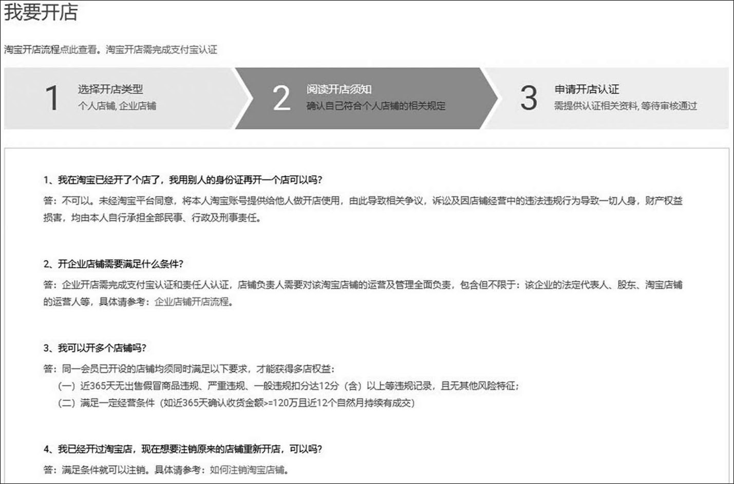 (3)点击“创建个人店铺”,进入“阅读开店须知”界面,如图1.1.6所示。