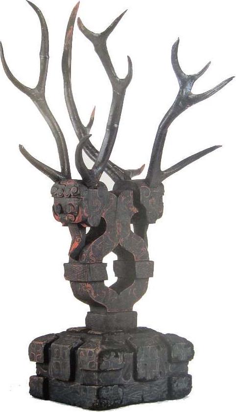 图 1-10 双头彩绘漆鹿角镇墓兽