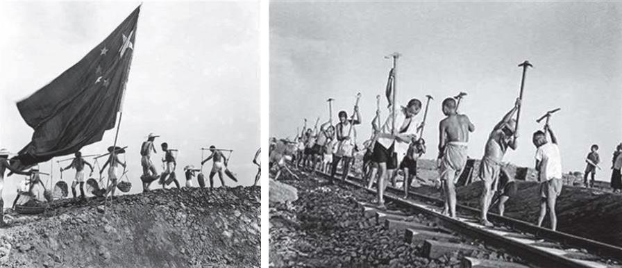 1950年6月15日,成渝铁路由重庆起正式开工建设。中国人民解放军西南军区司令部直属部队组成的军工筑路第一总队,高举“开路先锋”大旗奔赴开工地点,打响了修建成渝铁路的第一炮。紧接着,川东、川南、川西、川北4个军区分别组建4个修路总队,奔赴成渝铁路修建地,加上第一总队,共5个总队3万多名解放军指战员以及接收的失业人员和城市贫民18 000多人,日夜奋战在成渝铁路线上。