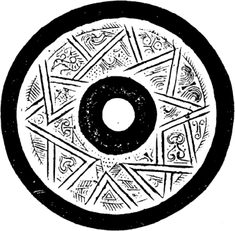 圆形。弦钮,围以凹面圈带。由双线组成的V形、三角形、四边形等几何图纹布满镜背,图形内填以叶纹、三角纹、卷云纹、涡纹、圆圈纹、散点纹、鸟纹、弧线、平行短线等。纹饰的排列无一定规律。素卷缘。直径10.8厘米。湖南郴州楚墓出土。《湖南郴州市马家坪古墓清理》图二.1(《考古》1961年9期496页)。 LHblelK0Mvhnt+ia7pQYvcH6i6dH0u7btwB6kgKxpikSbF131XbE0bjkn4HtUItn
