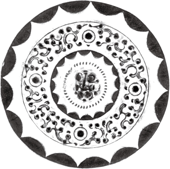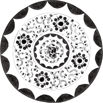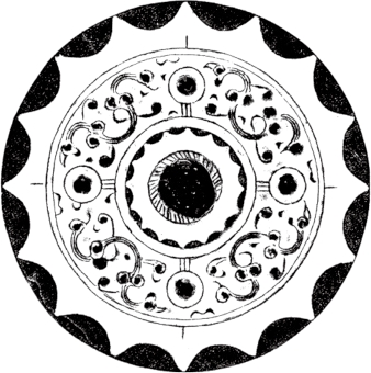 圆形。圆钮,圆钮座。凸圈带内装饰简单的线条和半圆形图案。两周短斜线圈带间四圆座乳分为四区,每区饰三枚小乳,中间小乳以曲线相连似花瓣。十六内向连弧纹缘。直径10厘米。此镜以回环蜿蜒的线条分割空间,图纹简单却新颖。河南洛阳西汉中期墓出土。《洛镜铜华——洛阳铜镜发现与研究》96页图47。