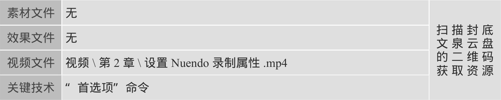 在Nuendo软件中设置录制属性的方法与在Cubase软件设置录制属性的方法类似,其具体操作步骤如下。
