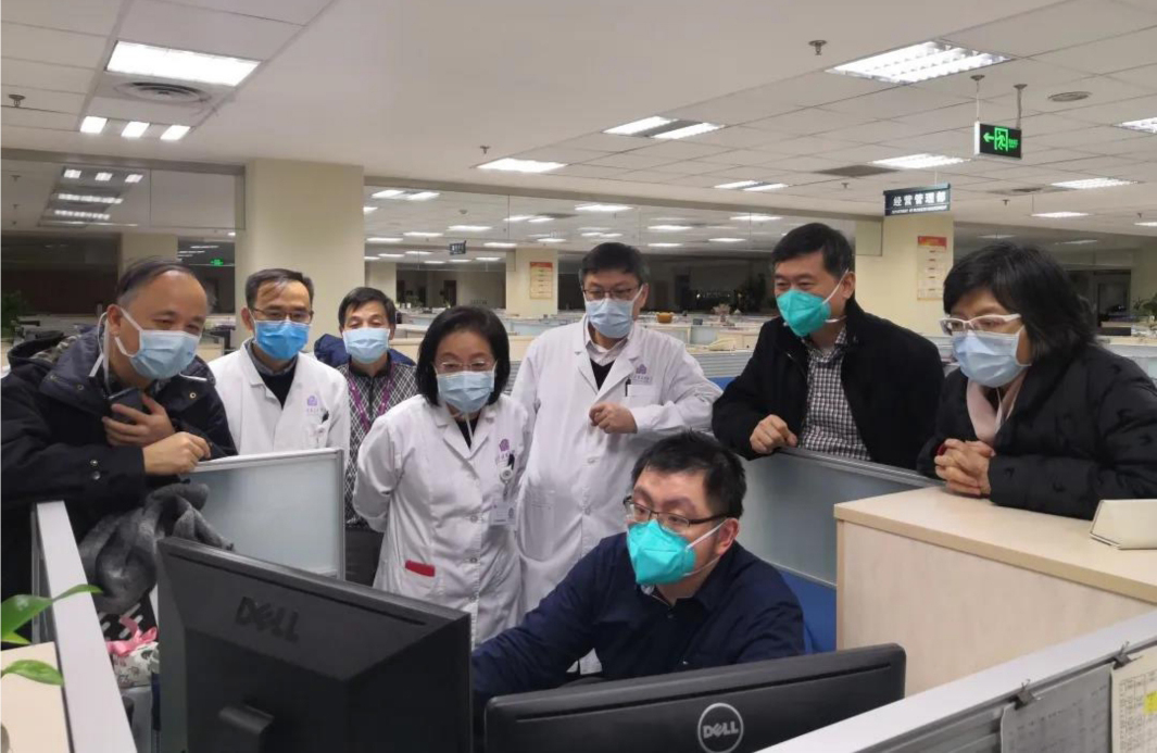 2月23号晚上9点,我和团队其他队员一起从北京西站出发,坐上了久违的火车,大家既忐忑,又期待,讨论了很久智能防疫设备部署和疫区实地考察计划(当然,我们全程都严实地戴着口罩,做了充分的防护)。第二天凌晨抵达目的地——武昌站,这是号称九省通衢大武汉往常最中心、最热闹的车站。下车后的站台,空荡荡的、冷清清的,到处弥漫着消毒水的味道。外面下着淅淅沥沥的小雨,刮着冷冷飕飕的北风。偌大的车站里,只有一列火车、一位列车长、一行六人和十二个箱子。行驶在封城中的武昌大街上,一边是摩登都市,一边又阒无一人,一切都像是科幻电影里的场景。和大家说实话,那个瞬间,那种莫名的凄凉,真的令人恐慌、伤痛。为武汉、为生命,团队被激发出更强烈的使命感,只想立刻投入与疫情的搏斗中去,于是我们未作停歇就直奔武昌区政府,打响了国家远程医疗队在抗“疫”援汉的第一枪。