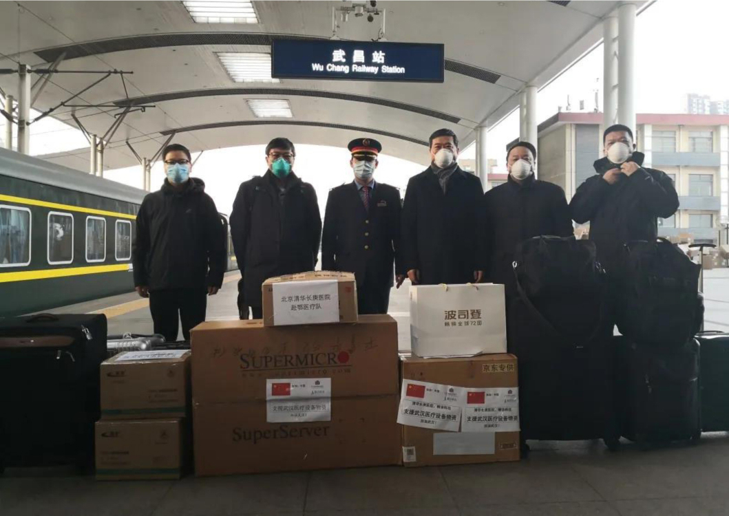 随车到达武汉的还有清华大学捐赠的医疗设备物资