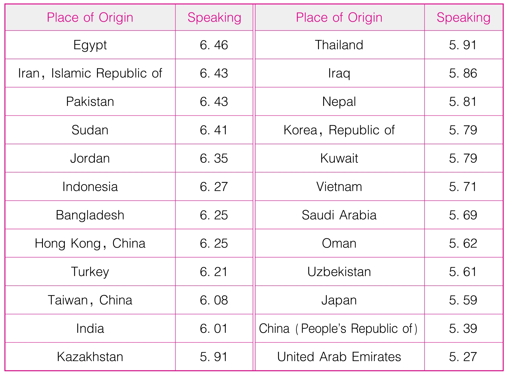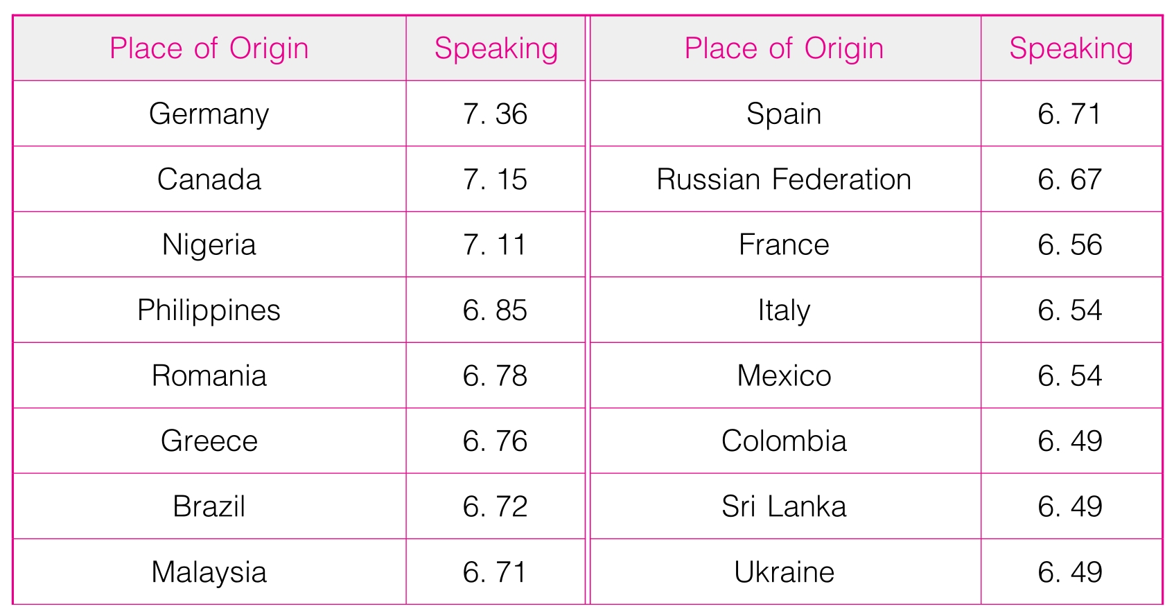 Mean Band Score for the Most Frequent Countries or Regions of Origin (Source: www.ielts.org)