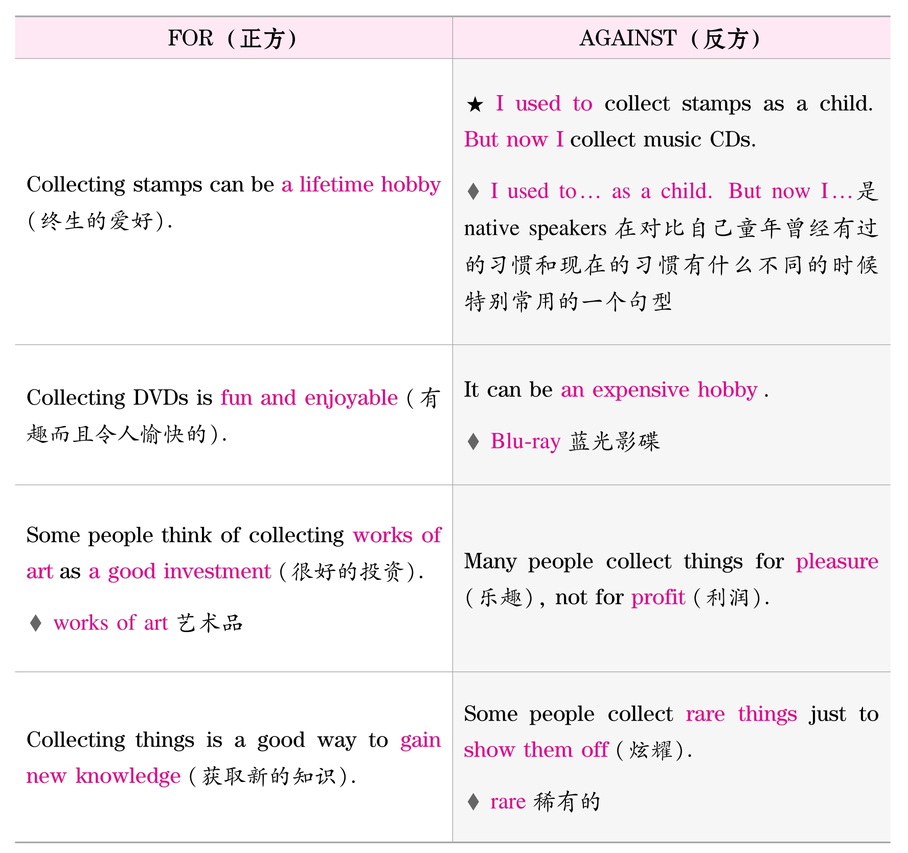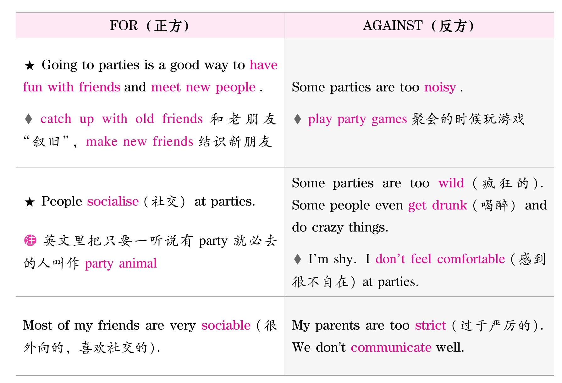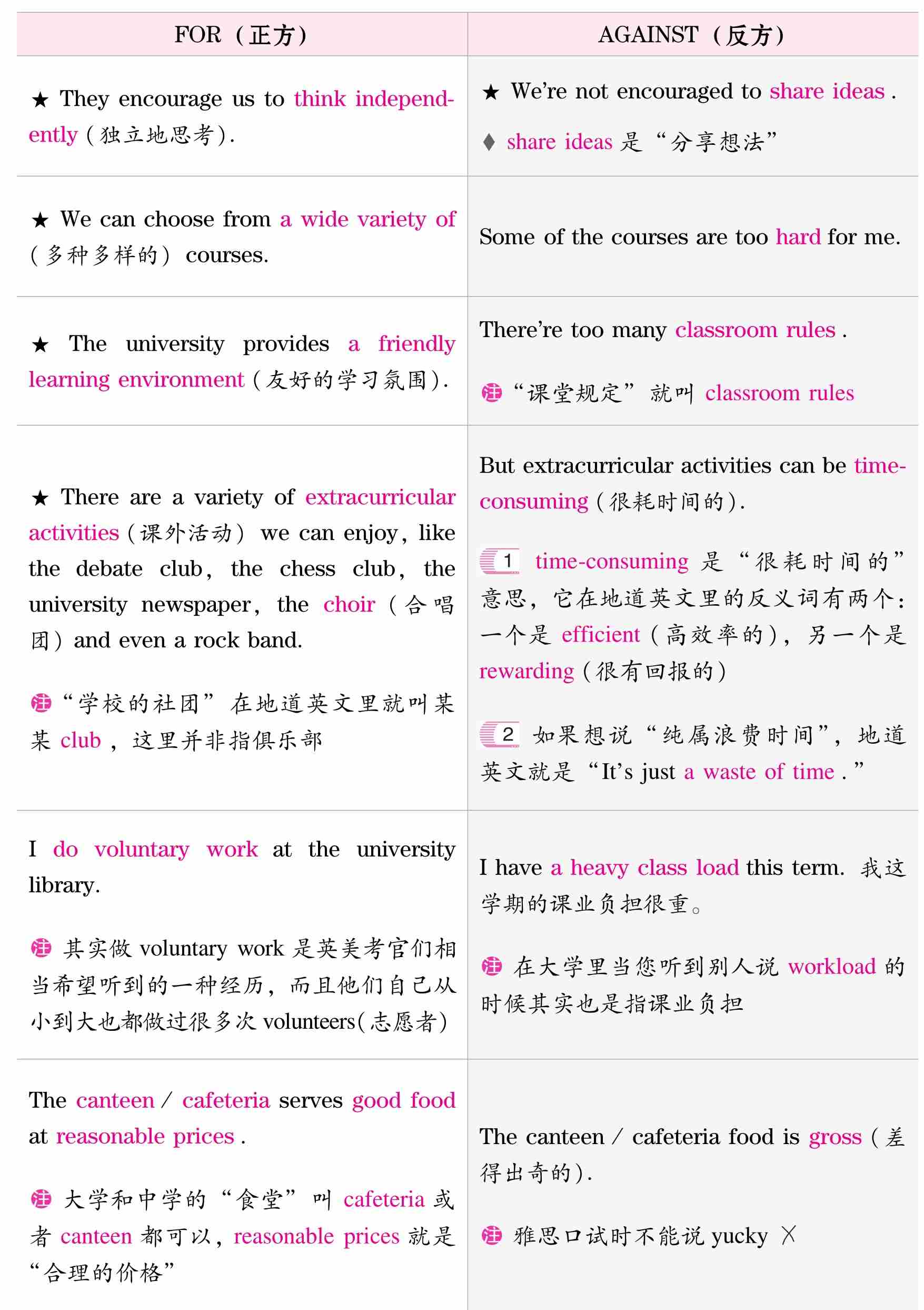 British Council对Part 1所持态度的要求 A negative answer is just as good as a positive one. 也就是说: 只要英文正确,一个肯定的答案或者一个否定的答案都是你的考官乐于接受的。 Pat对每个常考topic都同时提供了正、反两方面的ideas和词汇,您可以根据自己的实际需要来选择态度(请参考Day 2里的答案实例)。您还可以在本书附赠的《IELTS口语工具箱》和《高频词汇&短语速查手册》看到更多的Part 1加分词汇和短语。