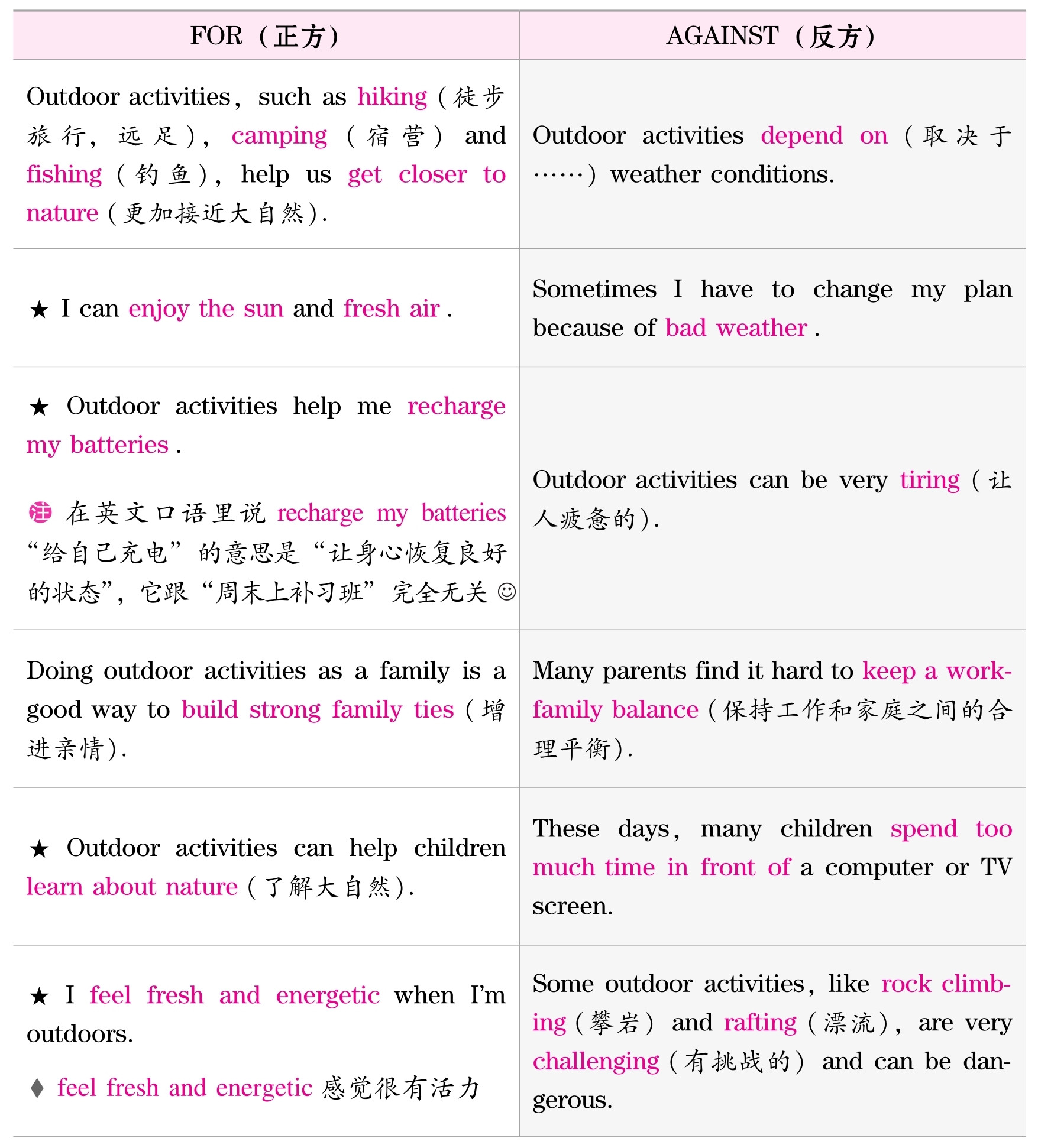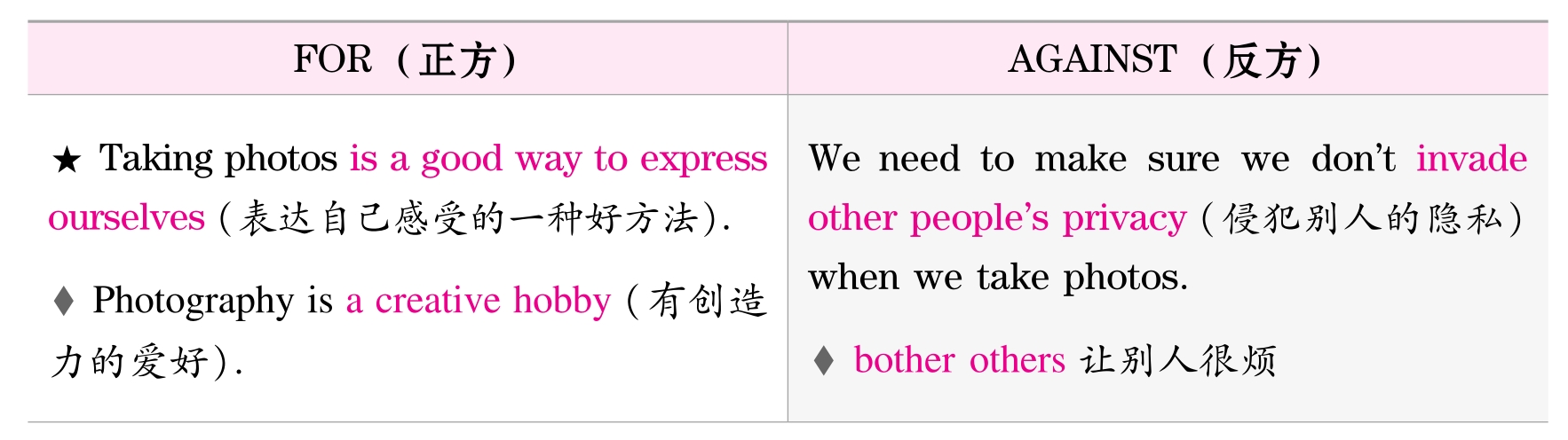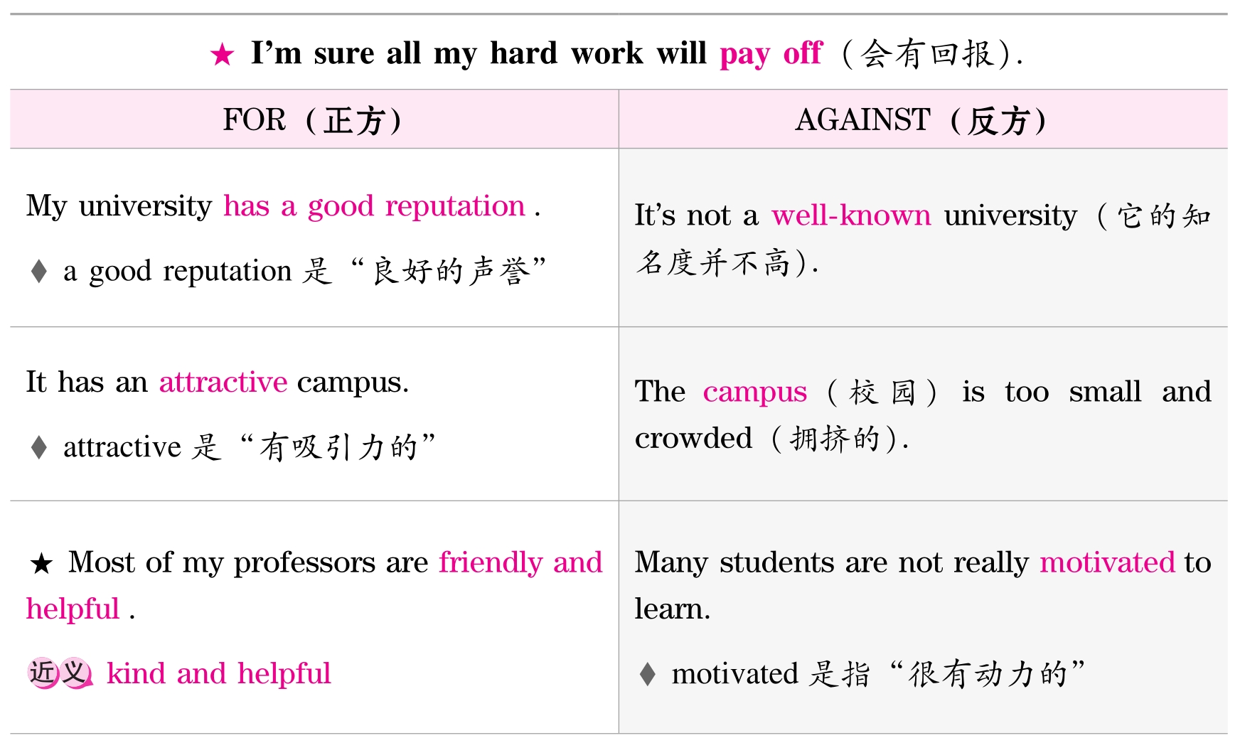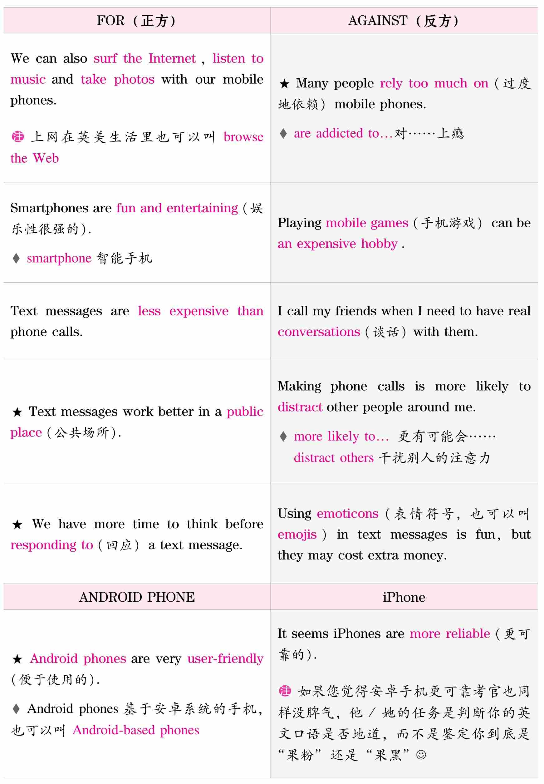 British Council对Part 1所持态度的要求 A negative answer is just as good as a positive one. 也就是说: 只要英文正确,一个肯定的答案或者一个否定的答案都是你的考官乐于接受的。 Pat对每个常考topic都同时提供了正、反两方面的ideas和词汇,您可以根据自己的实际需要来选择态度(请参考Day 2里的答案实例)。您还可以在本书附赠的《IELTS口语工具箱》和《高频词汇&短语速查手册》看到更多的Part 1加分词汇和短语。