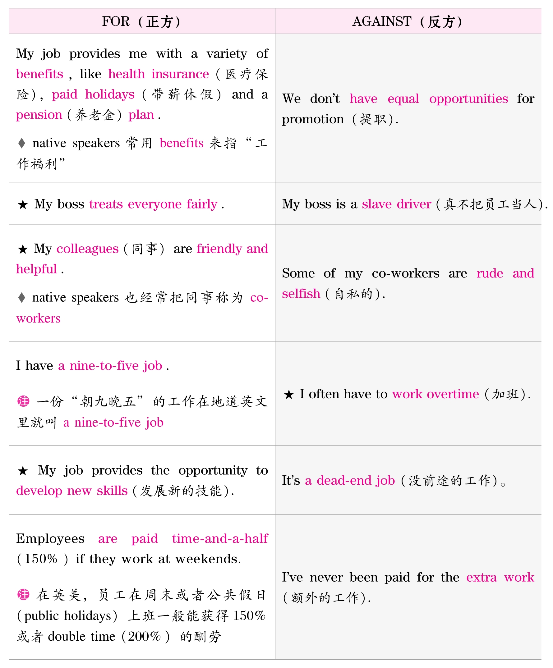 My job gives me a sense of satisfaction .(我的工作给我一种满足感)是英美人说很喜欢自己的工作时特别常说的一句话。