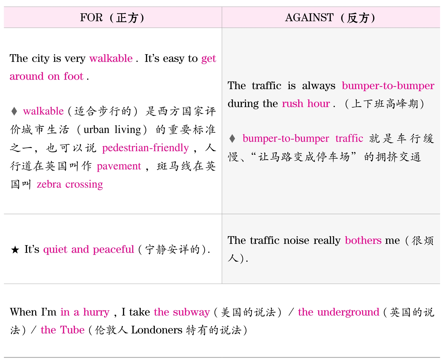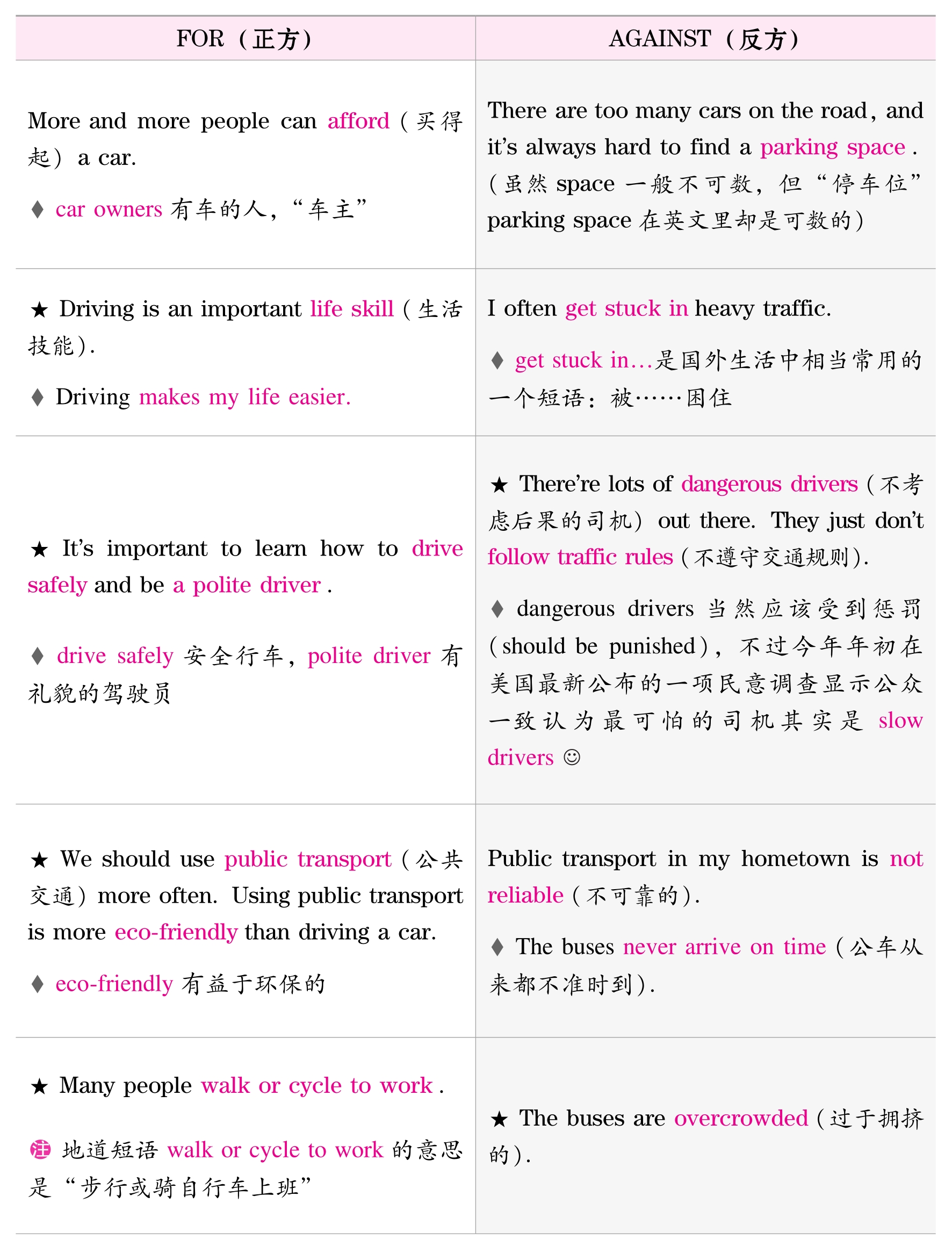 ☆ 比较拿分的交通工具(即使您没乘坐过也可以放心说,因为它们都是地道的英文): minibus (中巴); shuttle bus (班车或机场巴士); ferry (轮渡); light railway/light rail (轻轨); motorcycle taxi (“摩的”)