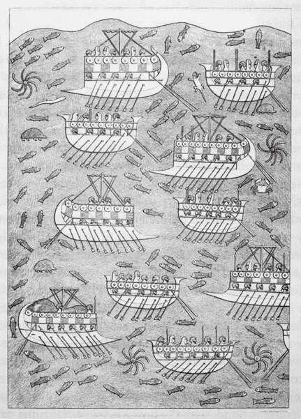 公元前4世纪,一位名叫皮西亚斯(Pytheas)的马西利亚裔的希腊航海家,在不列颠群岛的比斯开湾进行了探险,他也许到达了更北方的未知陆地,这次航行将在第9章中进行讨论。然而,大多数地中海的水手仍然只在故乡周围的海域内航行,以使他们的贸易、航海技术尤其是船只日臻完美,柏拉图(Plato)称之为“就像池塘中的青蛙”。