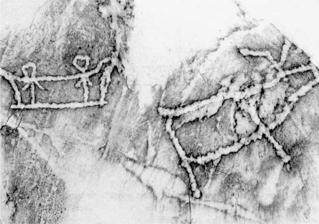 发现于挪威北部克瓦尔松的一幅青铜时代的岩画。画面显示