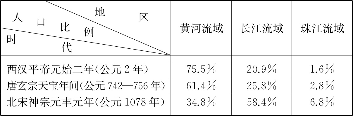 若以汉、唐、宋三朝为坐标点加以比较,其人口状况如下: