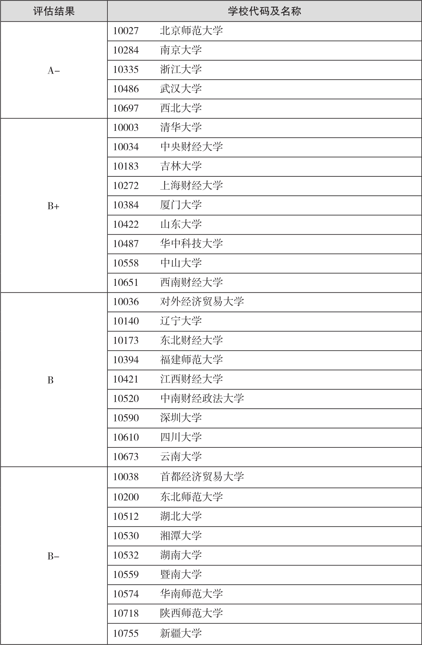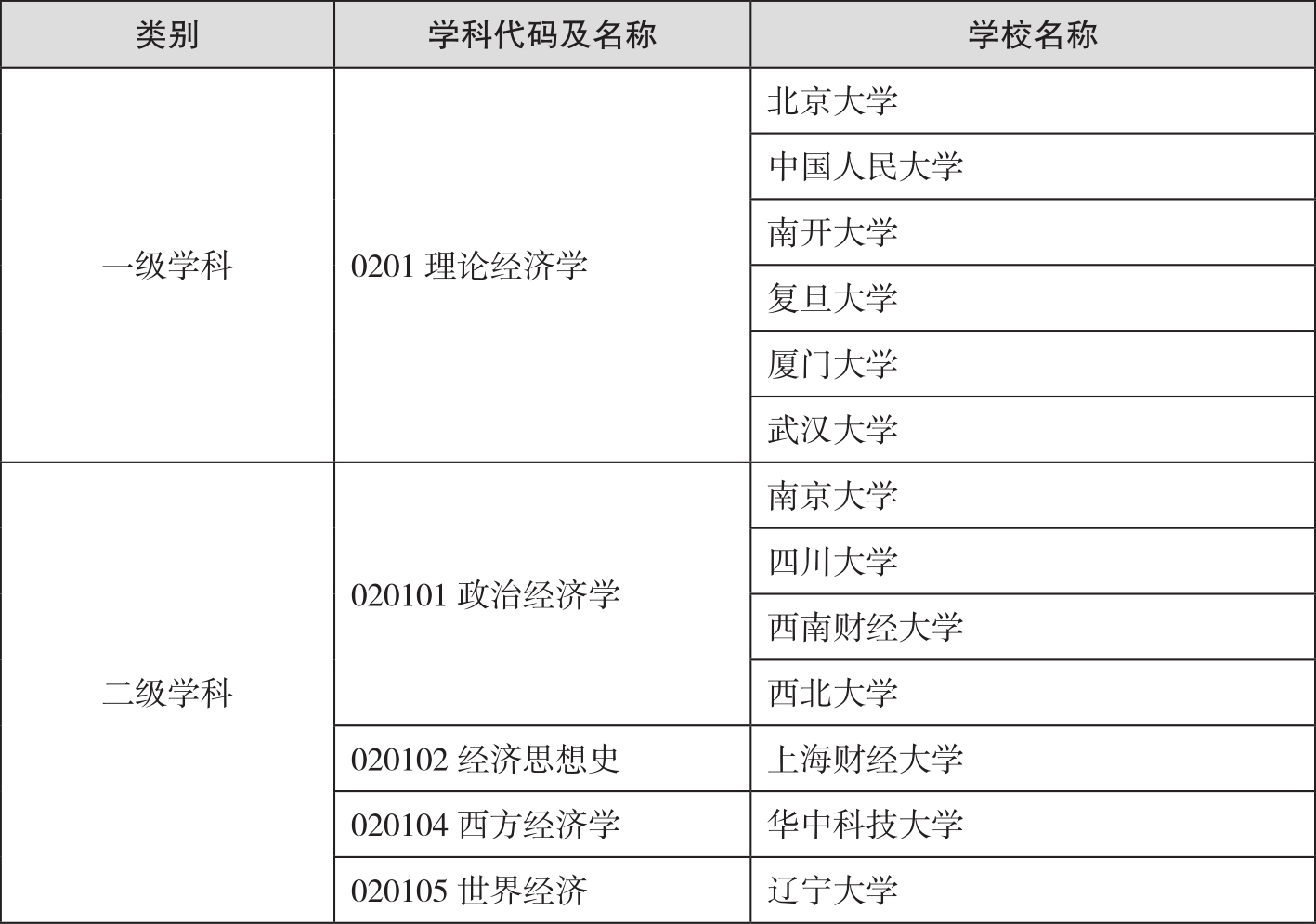 在教育部2017年6月公布的“双一流”建设学科名单中,经济学类别下入围的院校包括北京大学、中国人民大学、清华大学、中央财经大学、对外经济贸易大学、辽宁大学、武汉大学、西南财经大学。
