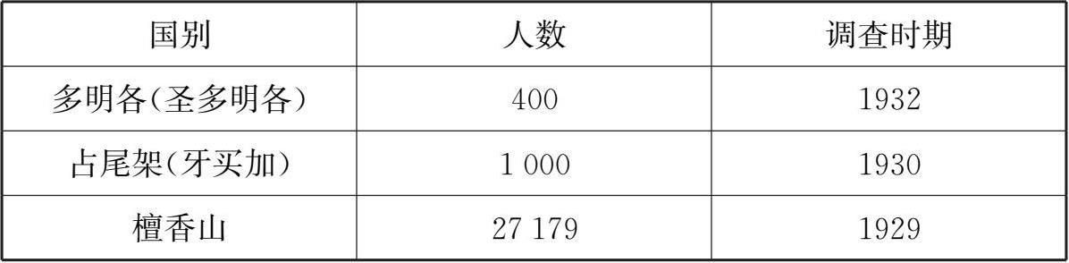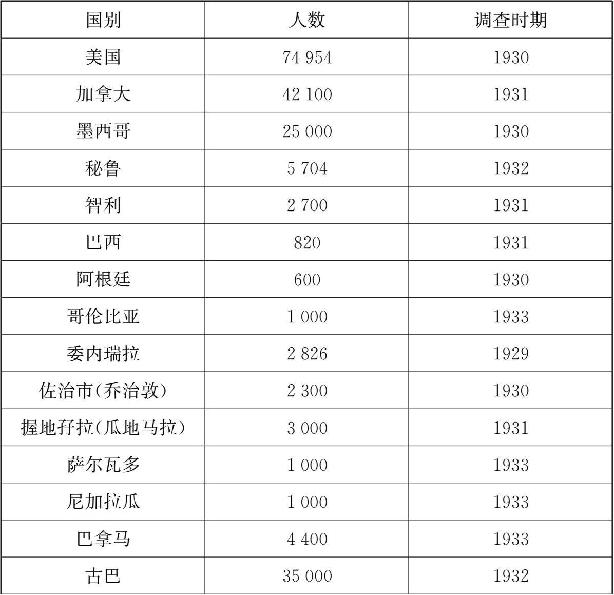 表1-1 20世纪30年代美洲国家华侨人数统计表